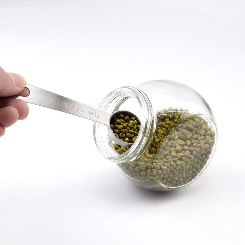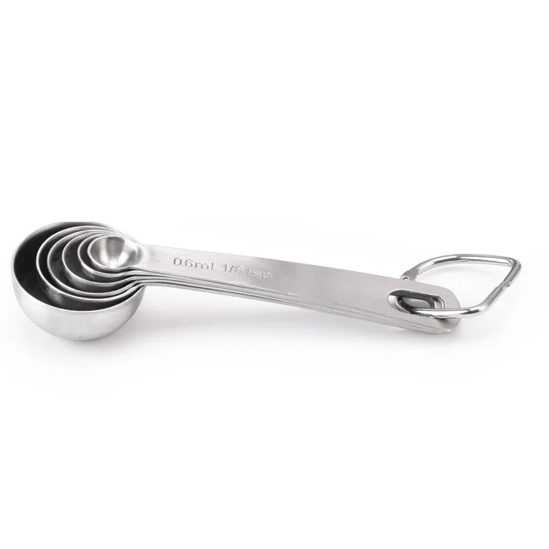 Colher de medição multiuso de aço inoxidável de qualidade alimentar, colher de medição de tempero em pó de café 6 tamanhos, ferramentas de cozimento de cozinha jja008