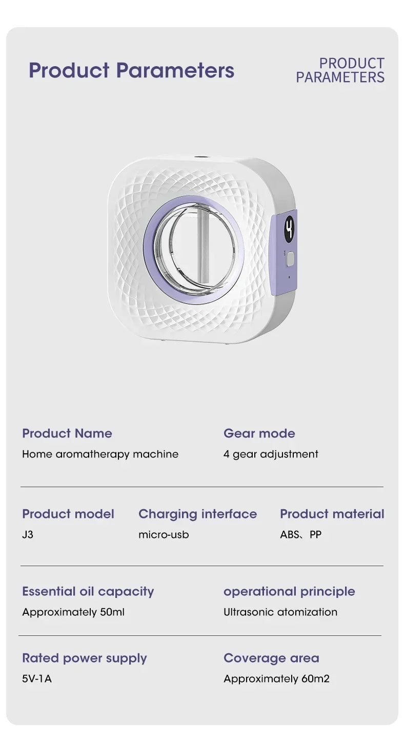 2.Três modos: O difusor de aroma possui três modos de operação, permitindo personalizar a intensidade e a frequência da fragrância para combinar com o ambiente desejado.