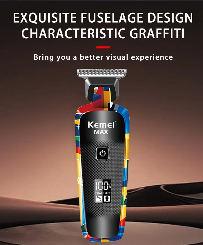 Kemei elétrica clippers moda graffiti usb barbear empurrador elétrico led lcd display digital barbeiro profissional KM-max5090