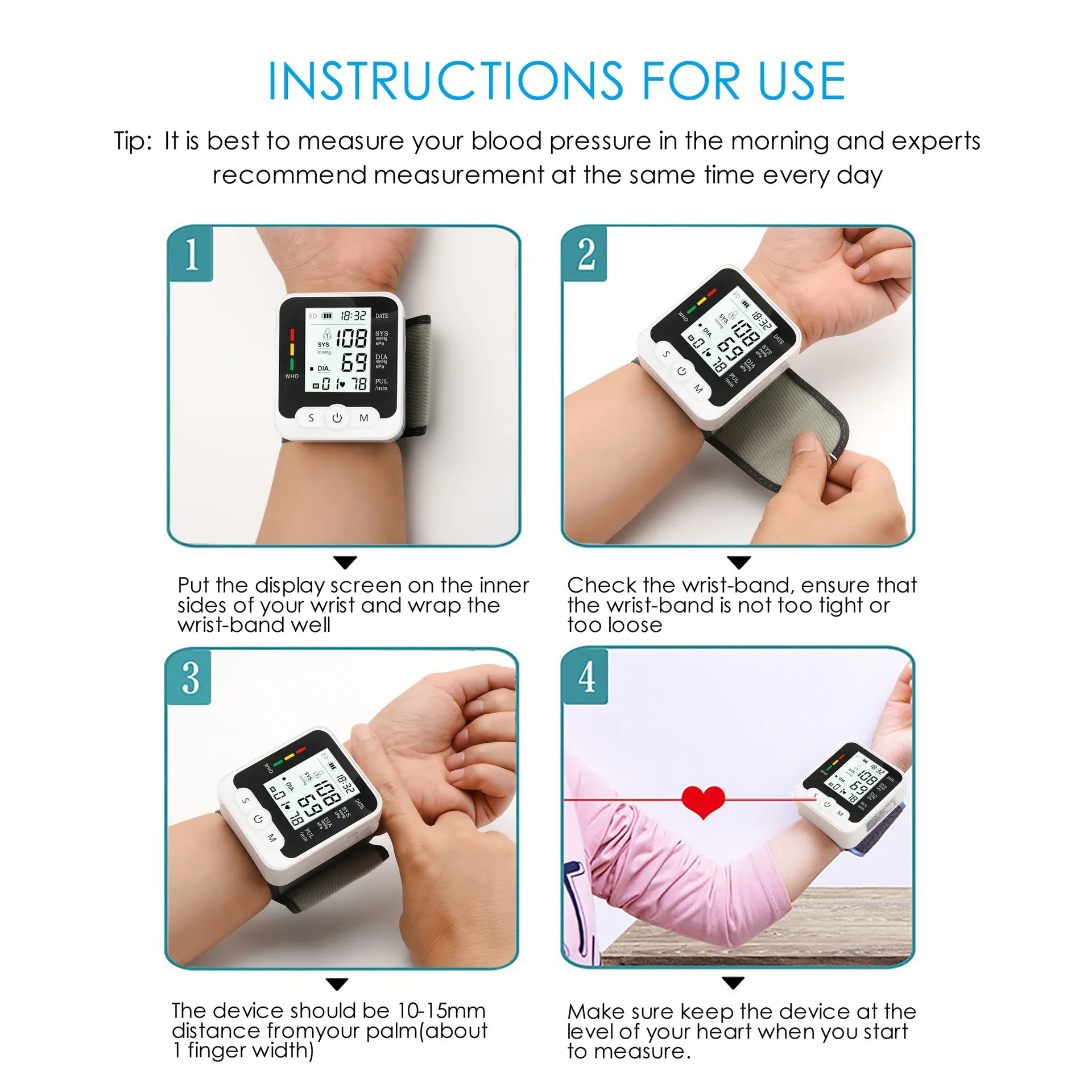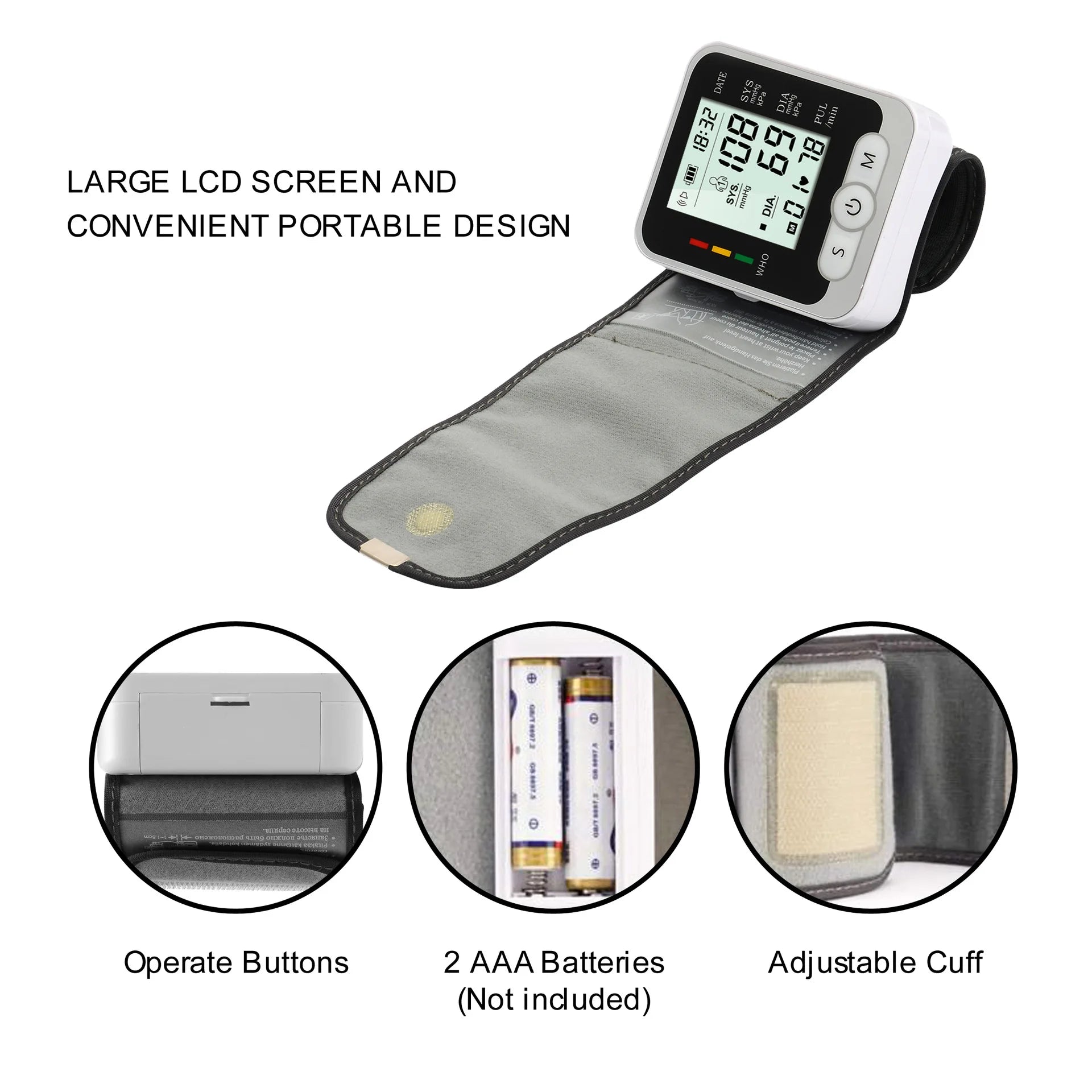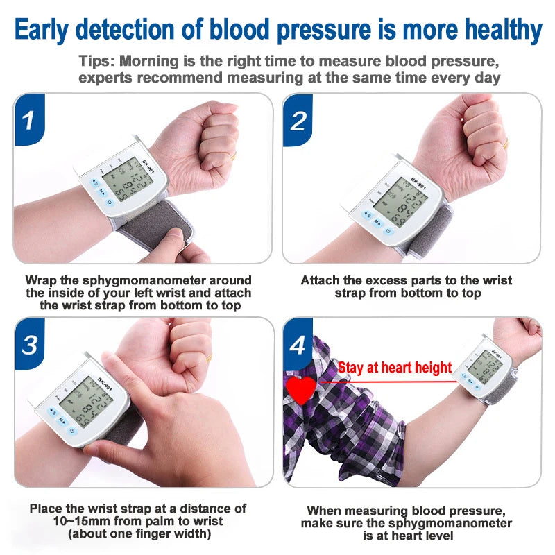 Monitor de Pressão Arterial de Pulso Digital – Medidor com Tela LCD, Frequência Cardíaca e Pulso | Portátil e Fácil de Usar